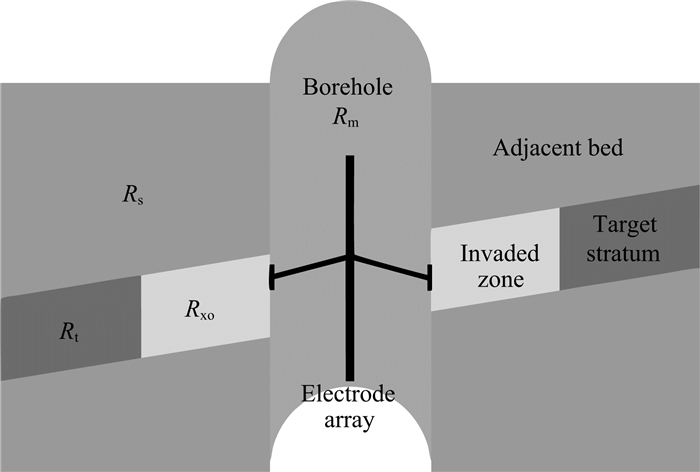 为得到更加丰富的泥浆侵入信息和消除Groningen效应(Woodhouse,1978)影响,HRLA(High-Resolution Laterolog Array tool)(Smits et al.,1998),HDLL(High-Definition Lateral Log)(Itskovich et al.,1998),Multi Laterolog(Zhou et al.,2008;Li et al.,2013),HAL6505(High Resolution Array Laterolog Logging Tool)(贺飞等,2013)采用阵列化设计,增加电极数量,电流返回电极系自身,实现了多种不同径向深度探测模式,有效消除了Groningen效应,纵向分辨率提高到0.3 m,多篇文献报道了阵列侧向的应用情况(Hakvoort et al.,1998;Griffiths et al.,1999;Brambilla et al.,2013). 为了同时实现多种探测深度和方位测量,3D-LS(Yin et al.,2014)将方位电极阵列和屏蔽电极阵列结合,采用不贴井壁测量方式,提供径向阵列探测和方位探测,其纵向分辨率较低,测量方位地层真电阻率能力较差.