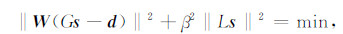 式中d是形变观测值,包括GPS位移(本文采用精度较高的水平位移)及InSAR形变观测值.W是观测值的权矩阵,与观测值方差-协方差矩阵D的关系为D=W-1W.G是形变格林函数,本文主要基于半无限空间地壳分层的弹性位错模型(Wang et al,2003)计算格林函数.s是待求的未知数矢量,一般指子断层滑动矢量.但是在InSAR数据参与的反演中,为消除轨道误差的影响,每个数据块应该引入3个未知改正参数:2个与距离成正比的双线性平面改正参数,1个相位常数差改正参数(Wang et al.,2011).在MW7.9主震反演中,我们根据InSAR与GPS LOS差值的分区特征,将InSAR数据分为2块,所以引入6个InSAR未知改正参数,与子断裂滑动参数同时解算.MW7.3余震InSAR重采样区域较小,反演中只引入3个未知改正参数.β是子断裂滑动量平滑因子,单位为m-1,平衡了不符值与粗糙度的权重.根据观测值不符值和粗糙度的折衷(trade-off)曲线来选取平滑因子,平滑因子选取的原则是不能不恰当地增加观测值不符值.L是拉普拉斯二阶差分算子,沿走向和倾向的第(i,j)个子断层滑动量s的差分公式为