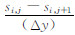 其中Δx、Δy分别是沿走向和倾向的相邻子断层距离(可以设为1).对于破裂边缘的子断层,采用拉普拉斯一阶差分算子,例如对于最上一层的第(i,j)子断层,沿倾向(2式右边第二项)只能做一阶差分: