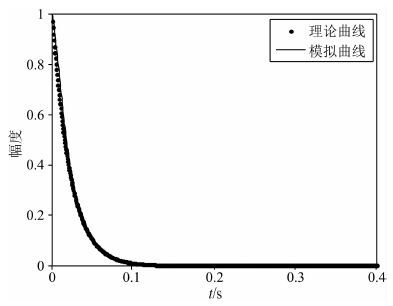 图 3 球形孔隙中随机游走方法模拟的磁化强度衰减曲线与理论值的对比 Fig. 3 Comparison of magnetization decay curve in an sperical pore obtained from random\|walk simulation |