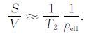 式中ρeff指有效的表面弛豫率,在只含润湿相流体时,ρeff=ρ;当饱含两种流体时,