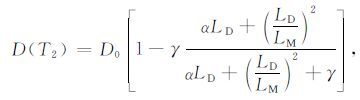 将式(A4) 和式(A8) 代入式(A5) 中,并用T2取代t,可以得到润湿相流体的扩散系数随横向弛豫时间T2的变化关系为