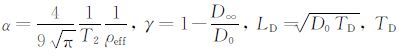 当孔隙中的流体在t时间内扩散距离小于孔隙半径,即扩散时间t较小时,其扩散系数表达式(Mitra et al.,1993)为