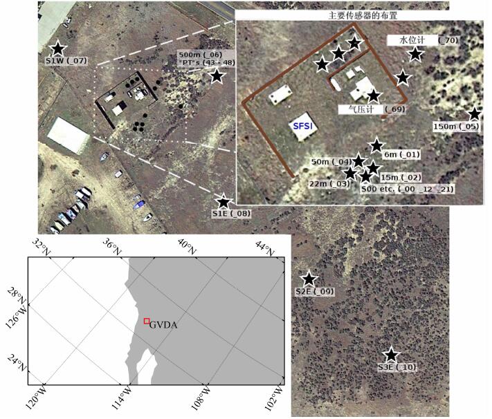 图 1 GVDA台阵仪器布设示意图 Fig. 1 Plane view of the arrangement of the instruments at GVDA |
