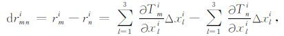 其中TTmi表示震源事件i到检波点m的走时(Travel-Time),因此TTmi-TTni表示的就是同一个震源事件到两个不同检波点的干涉走时(走时差).drmni是干涉走时的观测值与理论计算值之间的差,上标“obs”表示实际观测的干涉走时,上标“cal”表示理论计算的干涉走时.由于同一个震源事件的发震时刻是一定的,因此在方程(2)中,我们用同一个震源到不同检波点的到时Tmi来代替走时TTmi,计算求差函数Tmi-Tni,就可以消除事件i未知的发震时刻的影响,并且这个到时差也就等同于走时差TTmi-TTni.方程(2)就是本文干涉反演的目标函数,也可以说是干涉走时残差函数.