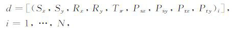 根据式(16)即可以构建三维直角坐标系下数据空间分量 d=(Sx,Sy,Sz=0,Rx,Ry,Rz=0,Tsr,Psx,Psy,Prx,Pry) 中除了走时 Tsr 之外的所有分量与模型空间分量 m=(x0,y0,z0,θs,øs,θr,ør,V) 之间的一阶线性扰动关系.如炮点横坐标Sx、炮点 Psx 参数与模型空间各分量之间的一阶线性关系即可写出: