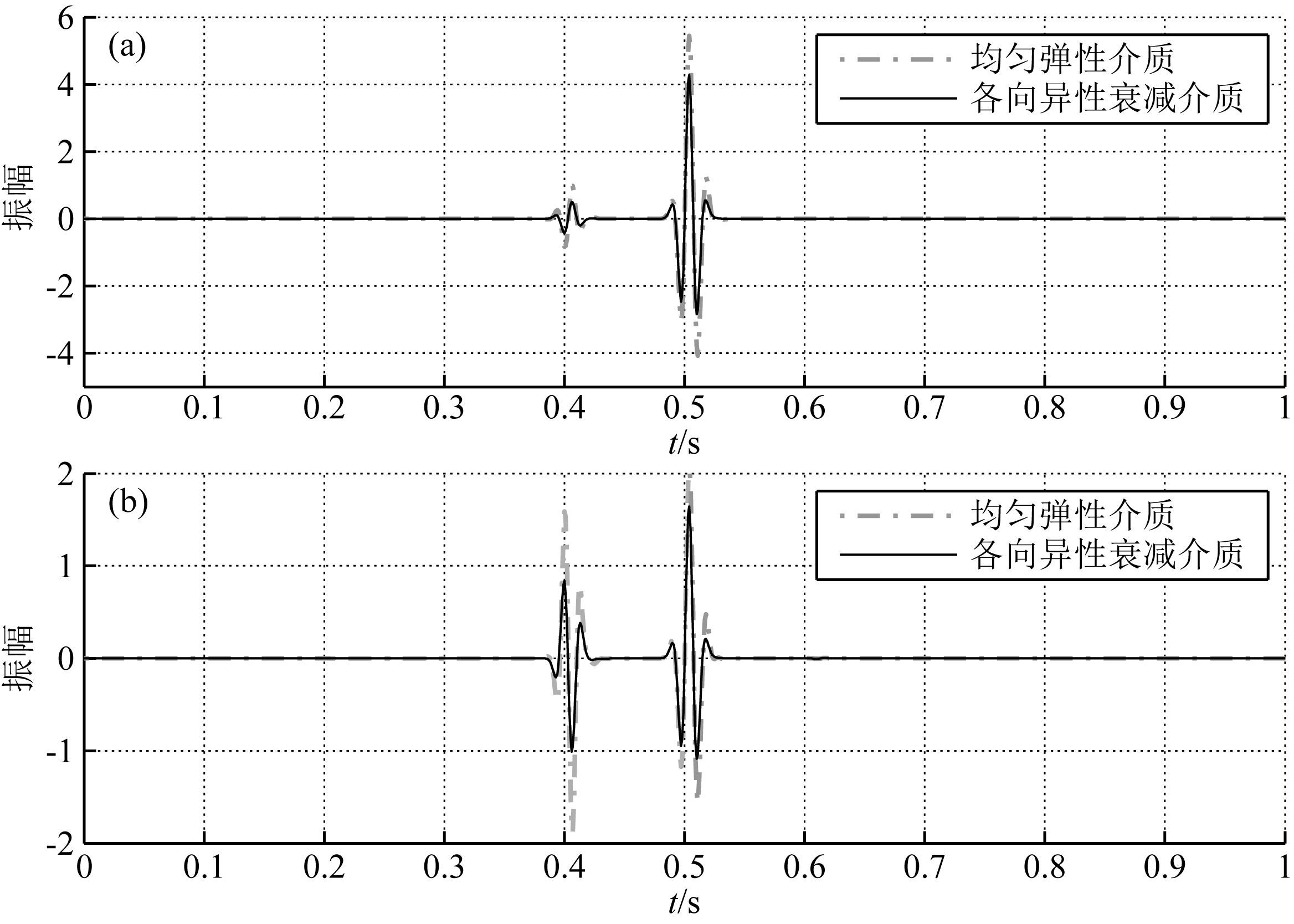 图 5 偏移距500 m时均匀弹性介质和各向异性弹性介质波形对比 Fig. 5 Comparison of waveforms in isotropic-elastic and anisotropic-viscoelastic media at offset 500 m |