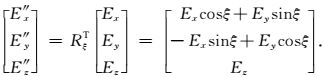 由式(13)能够得到接收站坐标系(x″, y″, z″)中电磁场F″=(Ex″, Ey″, Ez″)有如下表达式