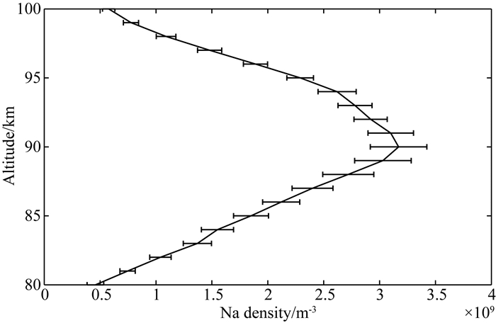 图 3 廊坊上空平均钠原子数密度廓线及其标准差 Fig. 3 Mean profile of Na atoms density and its standard deviation at Langfang |