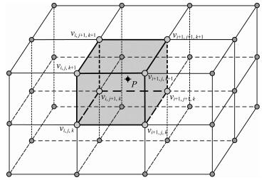 图 2 基于矩形网格的三线性速度插值 Fig. 2 Trilinear velocity interpolation based on rectangular grids |