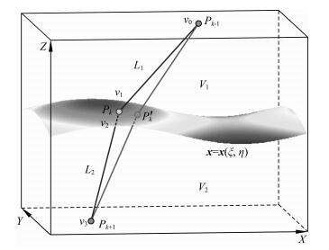 其中,zj为界面节点深度,hint为路径点处垂直于界面的位移,zint为路径点的深度,如图 5所示.