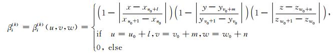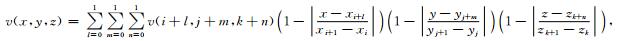 式中,v(i+l, j+m, k+n) 分别代表 8个节点的速度值;xi,yj,zk分别为矩形速度网格在x,y,z三个方向的位置坐标.