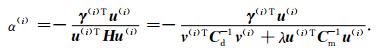 (2) 计算步长α(i),使得目标函数Ψ(m(i)+α(i)u(i)) 下降,定义v(i)=G(i)u(i),有
