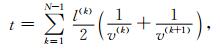 沿着射线路径L,走时t为慢度 (速度倒数) 沿射线轨迹的积分,其离散的近似表达式为