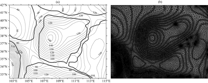 图 2 主要地块及岩石圈底面深度和软流圈模型剖分 (a)主要块体(粗灰色线)及岩石圈底面深度(等值线单位:km)(参考Zang et al., 2005);(b)软流圈3D模型网格剖分,共计678550个单元,131177个节点. Fig. 2 The geology blocks (bold gray lines) and depth of the bottom of lithosphere (isoline depth: km) and the mesh of asthenosphere model (Zang et al., 2005) (a) The geology blocks and depth of the bottom of lithosphere; (b) The mesh of asthenosphere, there are total 678550 elements and 131177 nodes. |