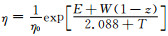 密度和黏滞系数是影响软流圈物质运动的主要参数.假设软流圈物质为满足无限大普朗特数假设的不可压缩流体,其中密度随温度变化遵循Boussinesq近似:ρ=ρ0[1-α(T-T0)],式中ρ为流体密度,ρ0为初始密度,α为热胀系数,T0为初始绝对温度.黏滞系数采用Christensen和Harder(1991)无量纲的软流圈黏滞系数公式: