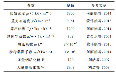 表 1 软流圈物质的基本物性参数 Table 1 The physical parameters of the asthenosphere mantle |