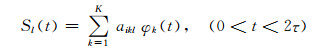 这里,i=1,2对应于子断层错动两个独立分量,通常指向滑动角±45°方向(Yoshida et al., 1990; 1996; Yue and Lay, 2013),K为子断层基函数总数,aikl为其中之一φk(t)的系数,是破裂的运动学参数.