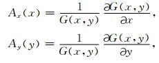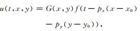 其中,G(x, y)表示是振幅的变化,即几何扩散和辐射花样的综合影响.px,py分别表示x方向与y方向的慢度.对式(11) 进行微分可得:
