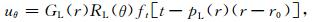 其中,GR(r)和RR(θ)分别表示P-SV波或瑞雷波振幅随距离和方位角的变化. GL(r)和RL(θ)分别表示SH波或勒夫波振幅随距离和方位角的变化. pR和pL都是r的函数,分别代表P-SV波和SH波的慢度.由于本文主要讨论面波,所以以下主要讨论瑞雷波和勒夫波.由于垂直分量与径向分量的面波部分属于瑞雷波,所以水平慢度同为pR.切向分量的面波部分属于勒夫波,水平慢度为pL.公式(1—3) 描述的是远震的瑞雷波和勒夫波的传播方程,并不适用于近震的地震波(Langston and Liang, 2008).