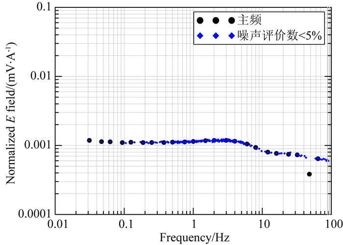 5 结论(1) 通过应用本文所提出的噪声评价方法,能够在频率域快速的提取CSEM信号中有效频率成分.在不增加任何野外工作量的基础上,能够提取更多的有效频率信息.