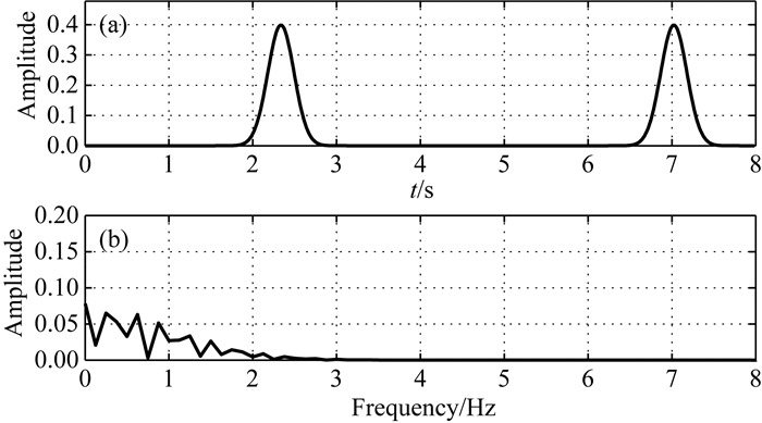 2 算法 2.1 噪声的频谱特征非周期噪声在频率域的频率谱是振荡的,噪声的不同出现时间对应着不同的时移因子,经傅里叶变换后在频率域表现为振荡.多个噪声在频率域叠加时,表现为锯齿状振荡.