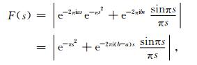 图 4为该仿真信号时间域和频率域曲线,从中能够看到频谱不再是简单的正态分布函数,而是一个振荡的频谱,此时两组振荡因子相加取绝对值不再是简单的常数,而是一个复杂的振荡因子1+e-2πi(b-a)s,其绝对值为一个振荡函数,所以其频谱出现锯齿特征.