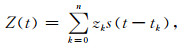 其中Z(t)和R(t)分别表示介质结构响应垂直分量和径向分量的位移,s(t)表示入射平面波的有效震源时间函数,tk为震相到时(当k=0时为直达P波),zk和rk分别表示震相垂直分量和径向分量的幅度,zk和rk是与反射、透射系数乘积相关的数值.用地表位移的垂直分量对其水平分量作反褶积处理就可得到介质结构响应,在频率域中表示为