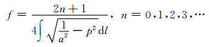 需要说明的是,此公式计算的结果主要受模型介质的速度变化的影响,而对射线参数不敏感,具体将在后面的讨论中说明.对于首都圈模型,射线参数为0.06 s·km-1时在不同深度,频谱极小出现的频率公式见表 2.