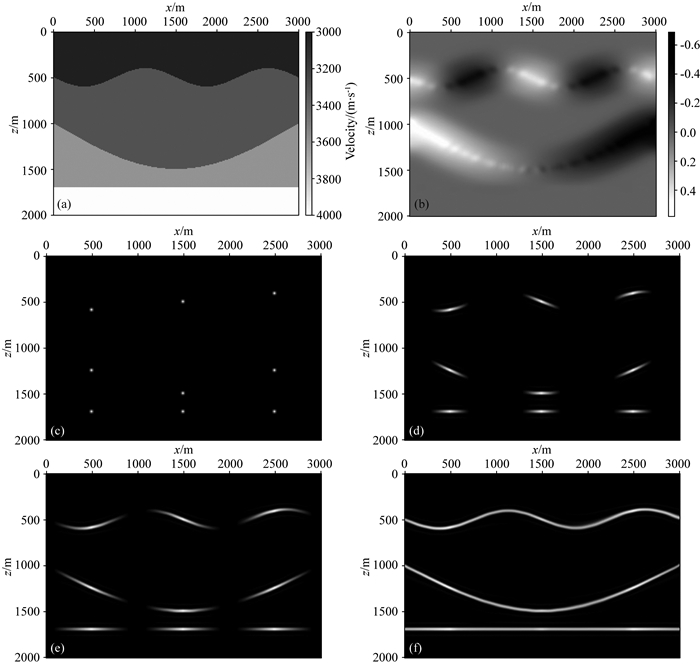 目前已有多位研究人员提出了不同的针对SS数据的偏移成像方法,从策略上可以分为两大类:一类是先分离再偏移,称为分离成像方法;一类是直接对SS数据进行偏移,称为直接成像法.分离成像方法先将混叠的SS数据分离为单炮记录,再利用常规方法对其偏移成像,分离方法的优劣直接影响成像结果.已有大量的研究取得了不错的效果(Akerberg et al., 2008; Beasley et al., 2016; Chen, 2015; Chen et al., 2014a, b, 2015a; Cheng and Sacchi, 2013; Huo et al., 2009; Abma et al., 2010; Mahdad et al., 2011; Xue et al., 2017; Zhang et al., 2015; Zu et al., 2016).但该方法需要先分离混合数据,然后用常规单炮偏移流程处理,与SS数据的高效采集不匹配.因此,越来越多的研究人员将研究重点转移到不需要分离的更为高效的直接成像类方法上来(卢昕婷等, 2015; Chen et al., 2015b, 2017, Dai et al., 2011, 2012; Li et al., 2016; Schleicher et al., 2015; Xue et al., 2016).