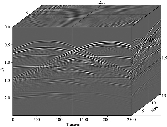 图 8 Marmousi模型同时震源数据 Fig. 8 Synthetic SS dataset of Marmousi model |