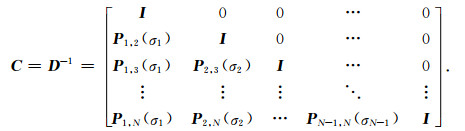 其中,I为单位算子,σi为局部倾角,P为预测算子,通过沿同相轴倾角方向来预测下一道地震数据,Pi, j表示从第i道来预测第j道.通过正则化共轭梯度法使得预测误差r最小来估计出主要的局部倾角信息.求得局部倾角后,即可构建PWC算子来对相邻道进行预测.PWC为PWD算子的逆,表示为: