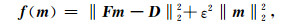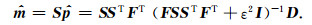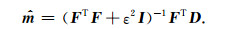 其中,F为SS正演算子,D为SS数据,ε为标量正则化参数,用来调节数据项和正则项的相对贡献量,ε的选择一般根据具体问题来确定.公式(6)在最小二乘准则下的解可以写为: