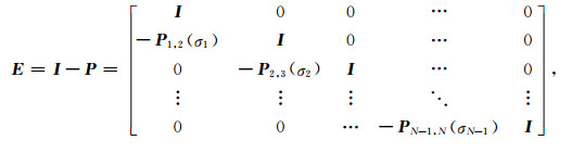 其中,B称为混合算子(Berkhout, 2008)或编码矩阵(Romero et al., 2000).B矩阵的行数为混合炮的个数,列数则为常规单炮的个数.其具体形式如下: