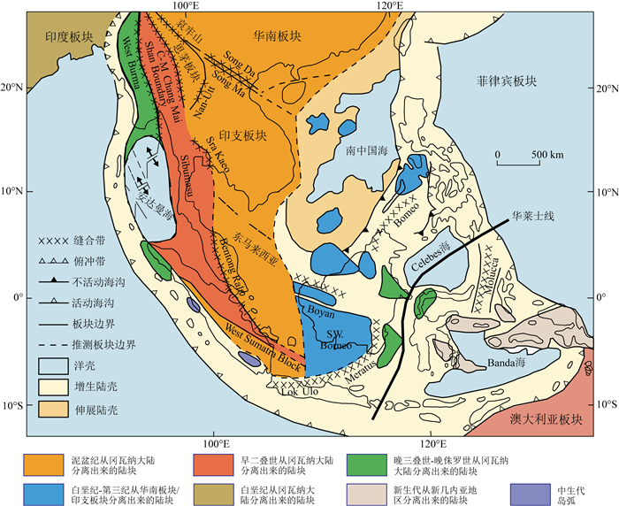 图 1 南中国海盆地周边板块构造格局(据Metcalfe,2006) Fig. 1 Plate tectonic framework around the South China Sea Basin (Metcalfe, 2006) |