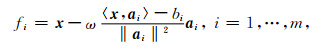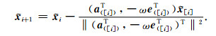 对于方程组(5)式可采用Kaczmarz的方式进行迭代求解,为表达方便,令Aω= AT ωIn,令Aiω表示Aω的第i行;在每一轮的迭代过程中的第i步可以选取(5)式中矩阵Aω的第[i]行进行投影,其中,[i]∈(1, …, n),即: