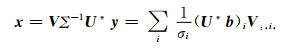 其中,U,V为正交矩阵,Σ=diag(σ1, …, σmin(m, n)),不相容问题的最小二乘解可以表示成