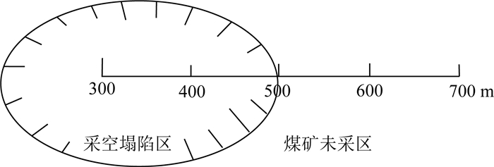 在已知采空陷落区(山西省平鲁区某煤矿)进行测试,采空区深度150 m.所布设的测线长度400 m, 测点距离10 m(图 1)300—500号测点位于采空区范围内, 采用仪器为GDP-32Ⅱ,试验装置为定源回线,回线大小为200 m×300 m,工作频率为32 Hz,发射电流8 A.
