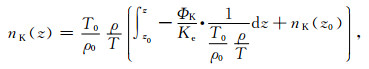 即nK(z0)是钾层底部高度z0处的总含钾成分数密度.又因为: