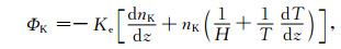其中Ke是涡旋扩散系数, T是大气温度, H是大气分子数密度标高, 公式为