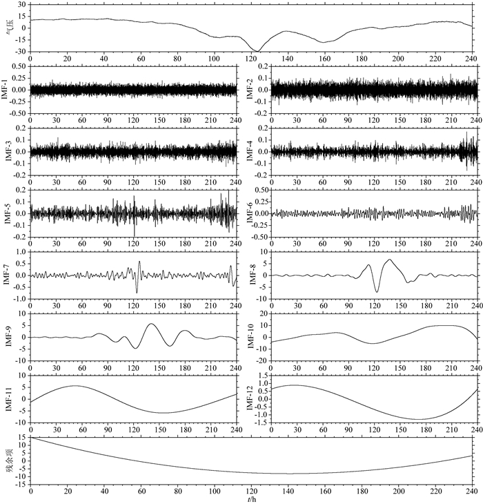 EEMD方法成功地解决了EMD分解中的模态混叠问题(Mode Mixing),使分解得到的IMF具有更为集中的频率信息.该方法为下一步进行具有频率依赖特性的精细化气压改正提供了有效的数学工具.