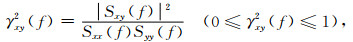 为了验证基于EEMD分解得到的两种信号IMF间的相关性是否正确,本文利用信号相干分析方法直接从频率域比较气压变化和重力残差序列在各频率的相关性.信号x和y的相干函数可定义为(Kay, 1988):