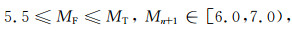 地震区每次标志性地震发生前,通常会发生显著预震,其震级(MF)与标志性地震震级之间存在如下约束关系(李培等,2016):