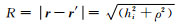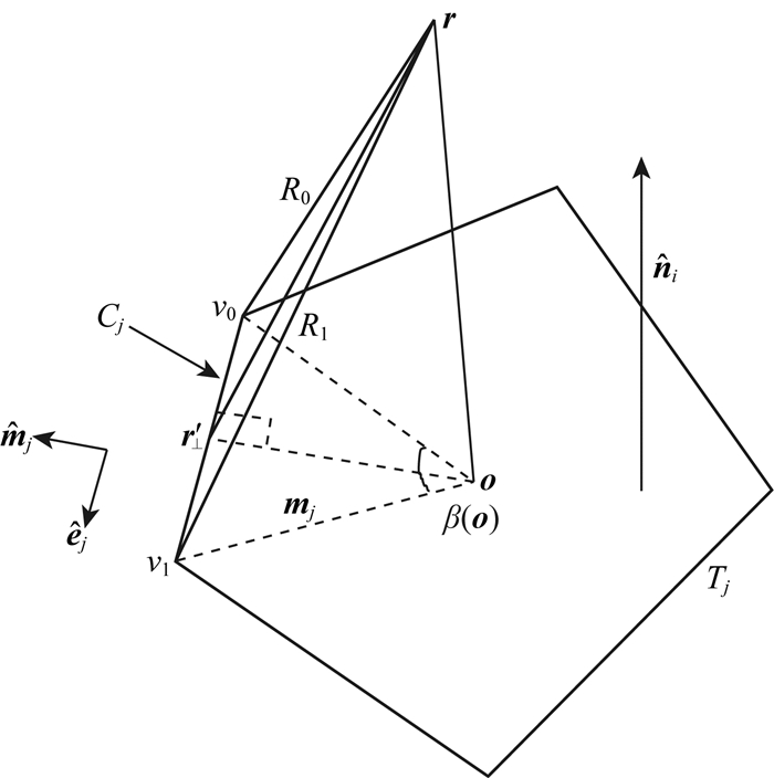 图 2 点r和多边形Tj的边Cj的关系 Fig. 2 llustration of the geometrical relationship between the observation site r and an Cj of a polygon Tj. The point o is the projection point of r onto the polygon Tj |