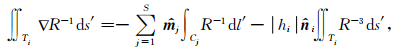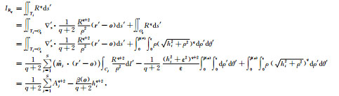 为了处理R→0弱奇异积分,将任意多边形Tj的积分分解为两个部分,一部分为奇异部分,即以o点为中心的无限小区域Oε,ε→0;另一部分为除奇异部分的其他区域Ωi-Oε,此时的积分公式可写为如下:
