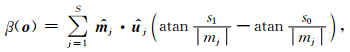 式中,β(o)为投影点o在多边形内Tj的固体角,固体角采用下面公式进行计算: