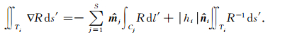 其中,∇′s为2D局部坐标下面散度算子.假设(u′, v′)为r′的局部坐标系,o为2D局部坐标中心点(0, 0),