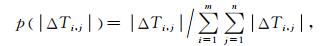 式中,H(ΔT)为延拓结果熵值,ΔTi, j为延拓方法计算值,M、N分别为网格化后的测线数与测点数,p(|ΔTi, j|)为每一点磁异常概率,在一定区域范围内可由(10)式计算(孙文等,2014)