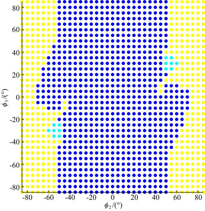 以上五种情况在612个表面中的分布,展示在图 5中.本文没有考虑正应力的作用.因此,将模型沿xy平面翻转,即同时改变ϕ2和ϕ3的符号,破裂过程没有任何差别.图中把ϕ2 < 0的情况也画了出来,并且加上了ϕ2=ϕ3=0的情况,因此共有1225个点.