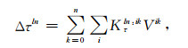 其中Δτln表示编号为l的三角形在第n个时间步结束时的剪应力变化量,Vik表示编号为i的三角形在第k个时间步结束时的滑动速率,Kτln:ik为积分核,表示第i个单元在k时刻的滑动对第l个单元在n时刻的应力作用系数.